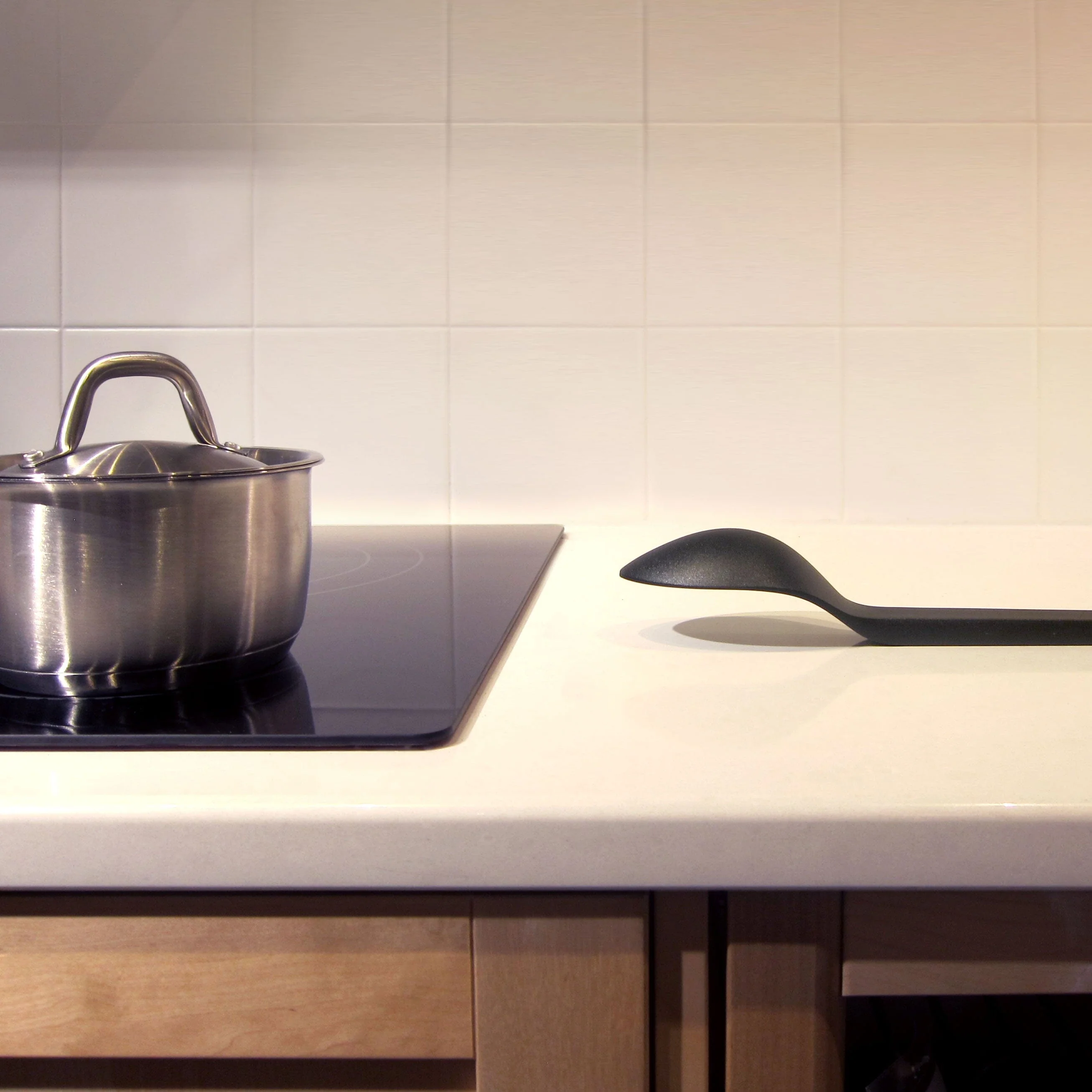 Cantilever no-mess cooking utensils float above the counter, improving hygiene and reducing mess. They also eliminate the need for a spoon rest.