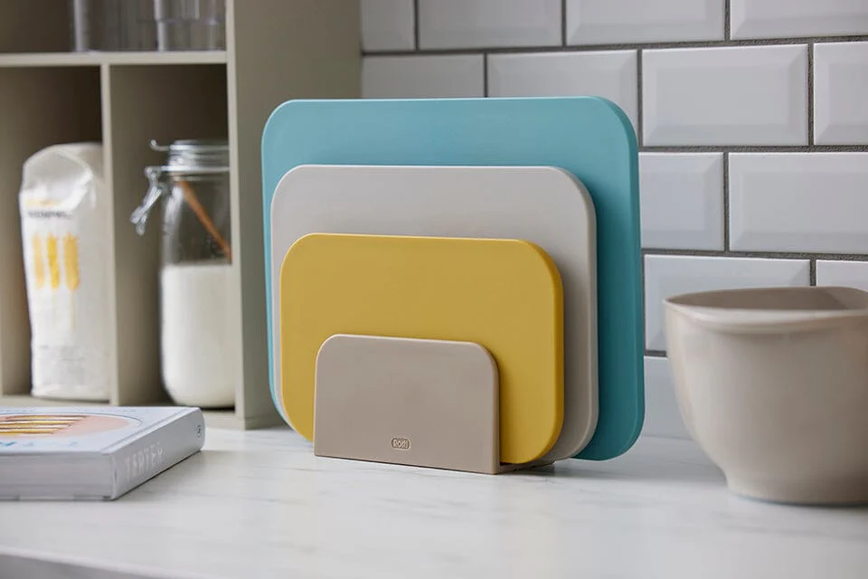 Elevate your culinary experience with Rosti's Choptima premium chopping board set with a stand — a must-have for every kitchen. Eliminate a messy countertop appearance by keeping your boards organized with an easy included storage system. This set includes a variety of colorful cutting boards designed for specific tasks. Crafted from high-quality, durable materials, these Danish boards are built to withstand daily use and resist knife marks from slicing, dicing and chopping. They look great, too! Keep your kitchen organized and hygienic with these versatile boards, ensuring you have the perfect surface for every food preparation need.