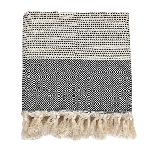 Add warm texture to your living room or bedroom with this handmade Turkish throw featuring a diamond pattern weave. Available in multiple colors with a hand-knotted fringe, these blankets are extremely versatile and ideal for bed spreads and sofa blankets, or even to take with you outdoors.Â